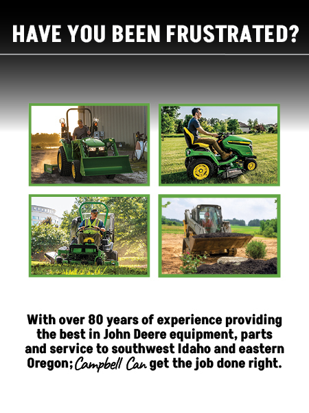 Campbell Tractor has been a trusted John Deere dealer since 1940, proudly serving the agricultural needs of Southwest Idaho and Eastern Oregon. With decades of experience, we are dedicated to providing top-notch equipment, exceptional service, and expert advice to our valued customers. Whether you're a seasoned farmer, a landscaping professional, or a homeowner with a passion for maintaining your property, Campbell Tractor is here to support you with the quality products and expertise you can rely on.